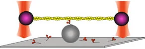 A dual beam laser trap allows measurements of nanometer displacements and piconewton forces produced by myosin interaction with actin.